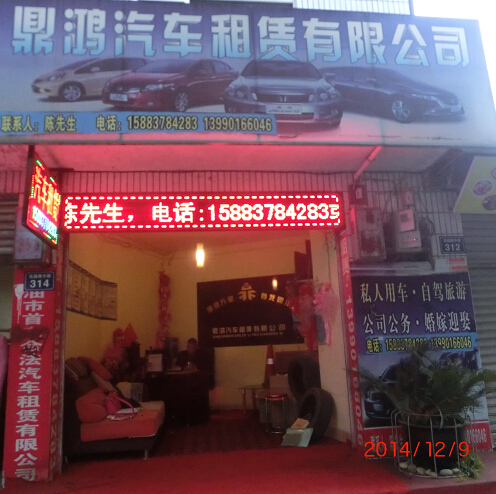 江油市鼎鴻汽車租賃有限公司成立于2012年于9月4日,公司地址位于江油市花園中學(xué)老外婆火鍋旁,公司現(xiàn)有員工十余人,公司辦公面積達(dá)到100多平米。我公司是江油市工商局核定批準(zhǔn)注冊成立的以汽車租賃為主要經(jīng)營業(yè)務(wù)的合法正規(guī)企業(yè),公司主要為您提供個人及公司公務(wù)用車租賃、婚車租賃等用車服務(wù),多種租賃方式供您選擇。公司以各類高中低檔汽車為主,竭誠滿足您的用車需要,請廣大有需要用車朋友多多關(guān)注和支持及時聯(lián)系。詳情請15883784283陳先生或到公司了解,馳騁萬里,有我鼎鴻!歡迎新老顧客到店咨詢。